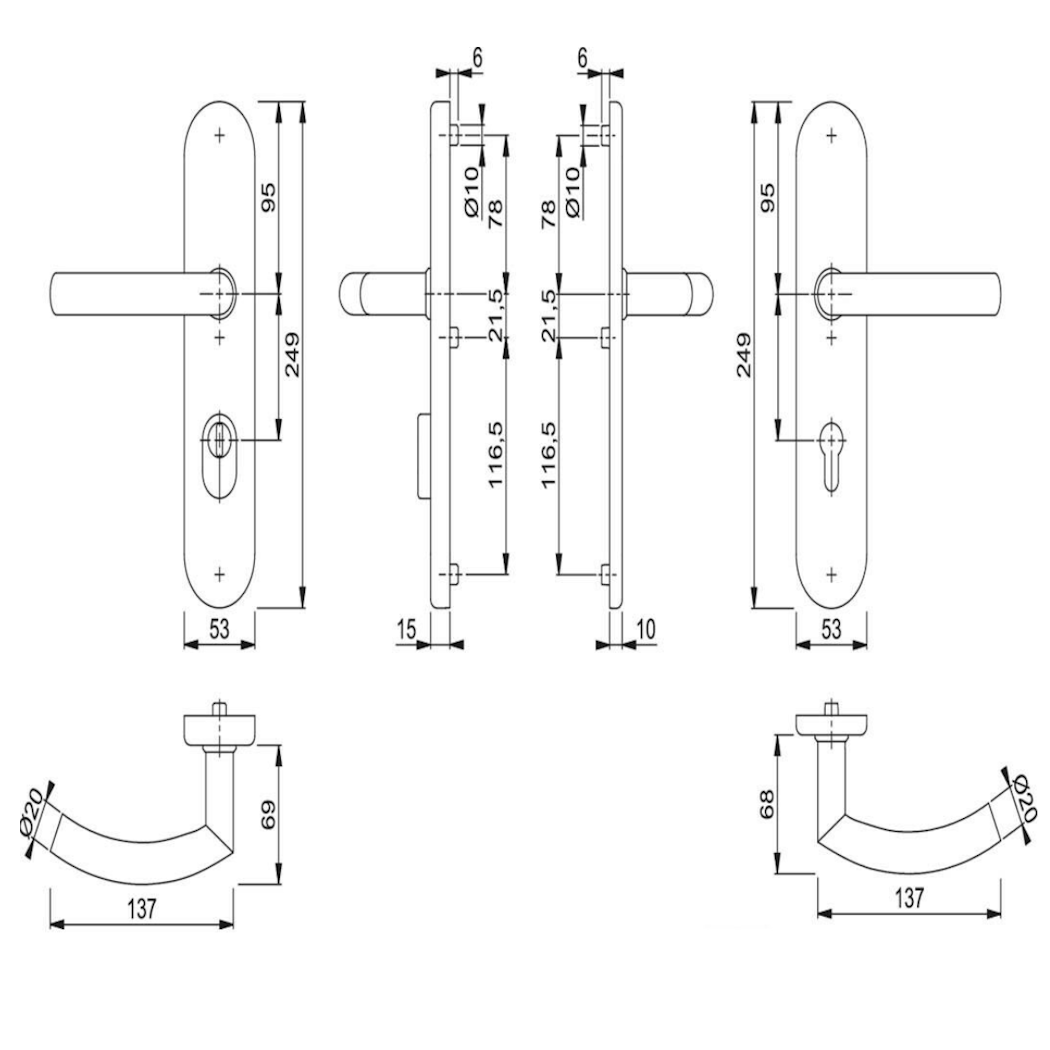 - Produkttyp: Schutz-Türgriff-Garnitur (Griff/Griff)