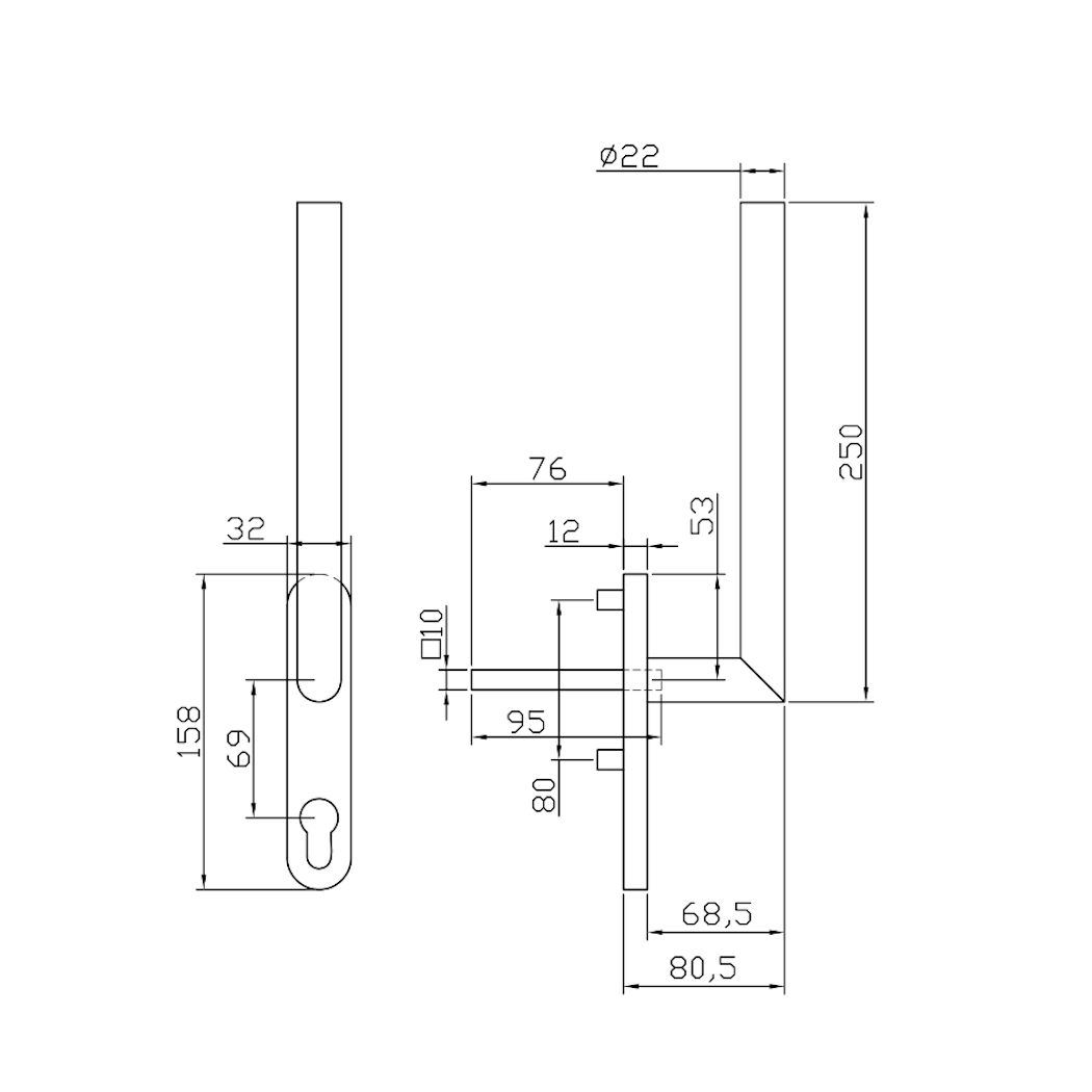 - Vierkantstift: 10 x 95 mm
