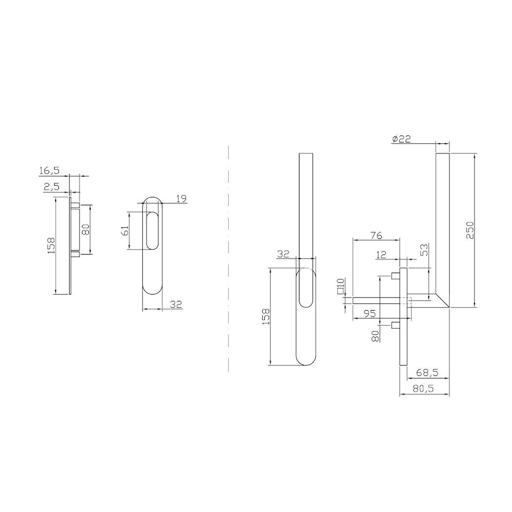 - Produkttyp: Hebe-Schiebetürgriff mit Griffmuschel