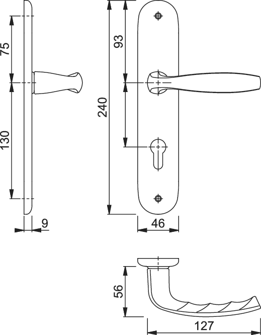 Hoppe New York Schutzbeschlag Sicherheitsgarnitur Aluminium Griff PZ ES1 92 mm