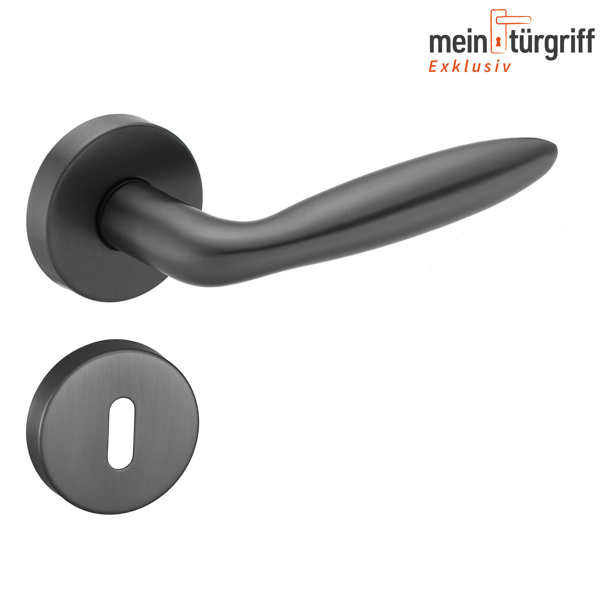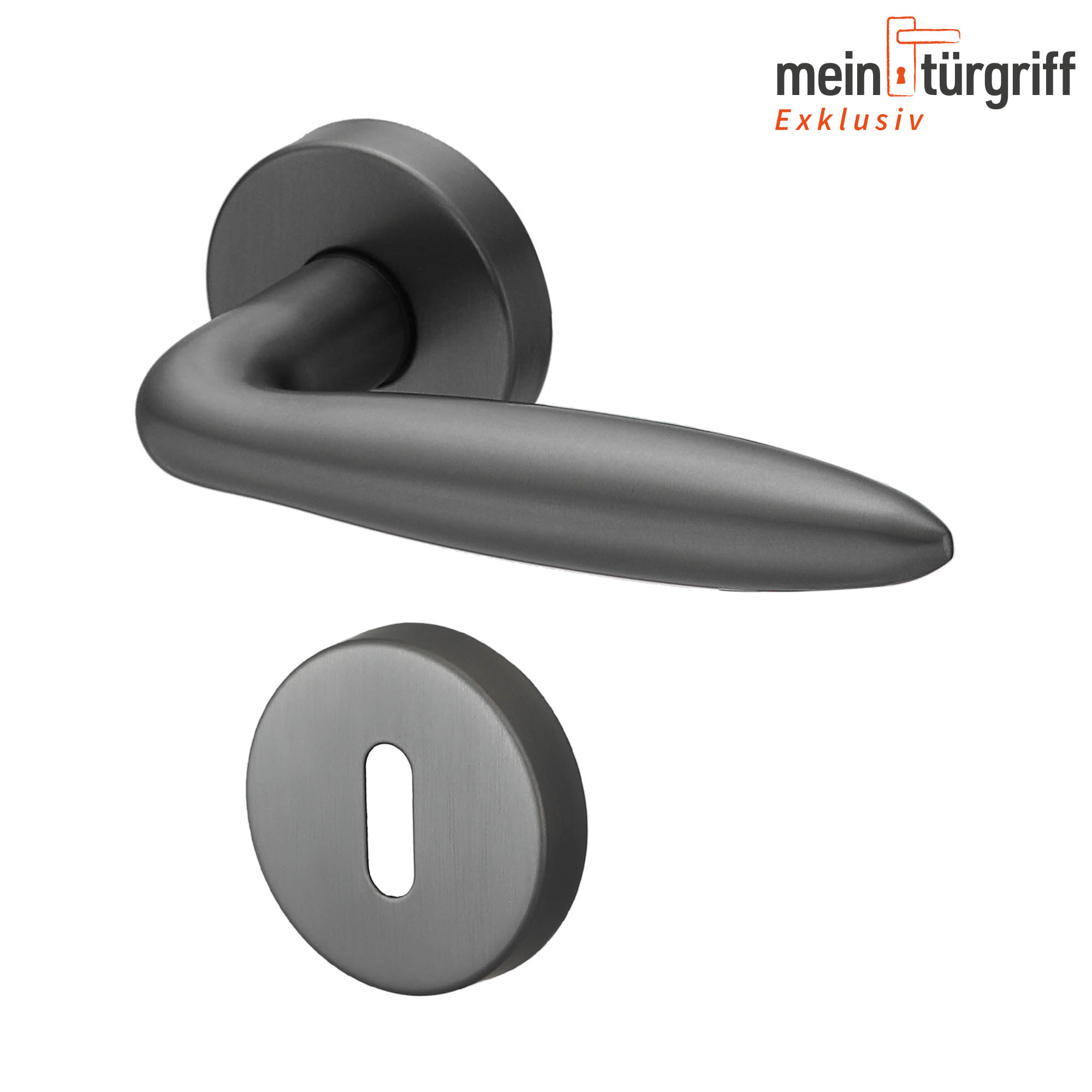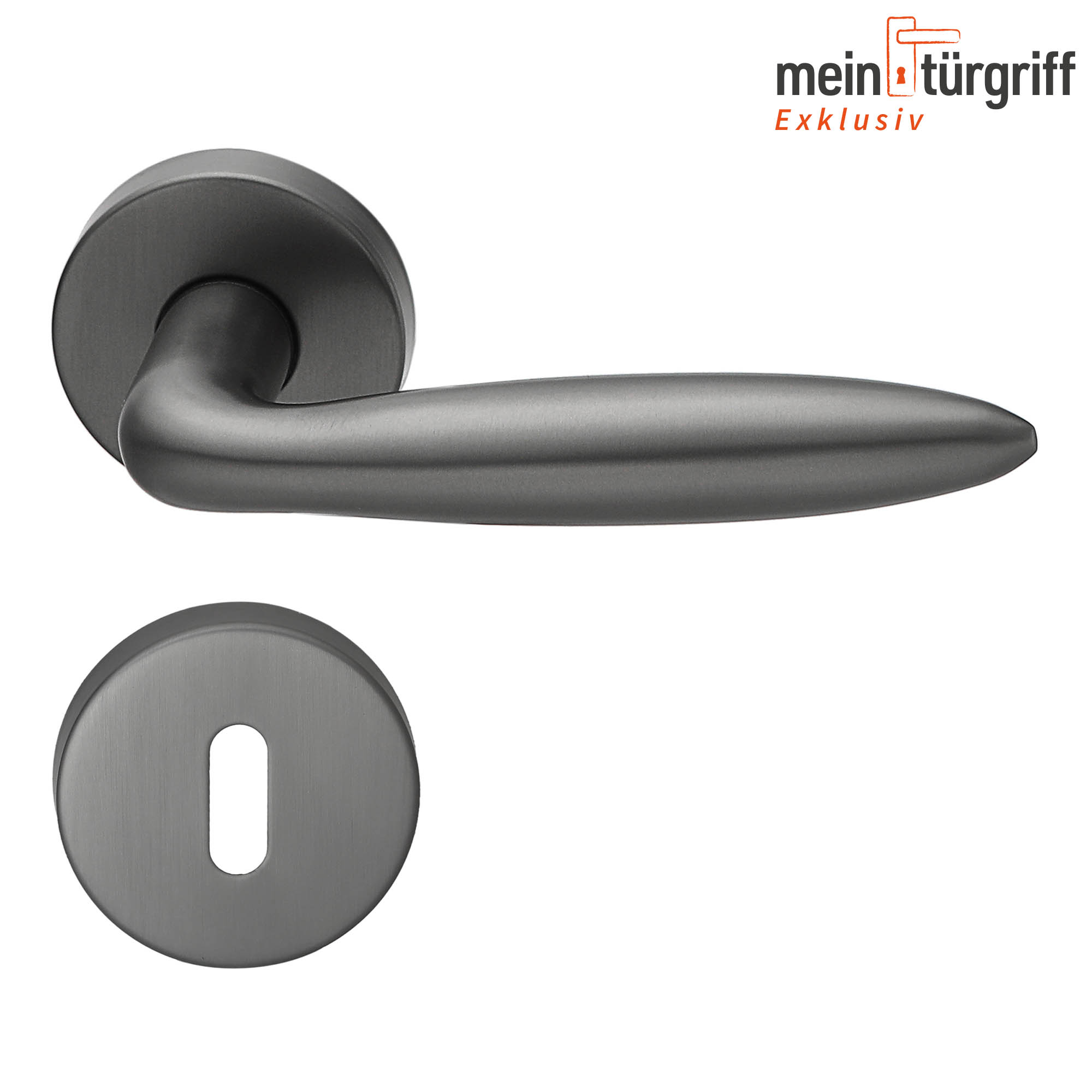MeinTürgriff- Edelstahl-Türgriff-Garnitur-Samtgrau mit Schlüsselrosetten für Innentüren