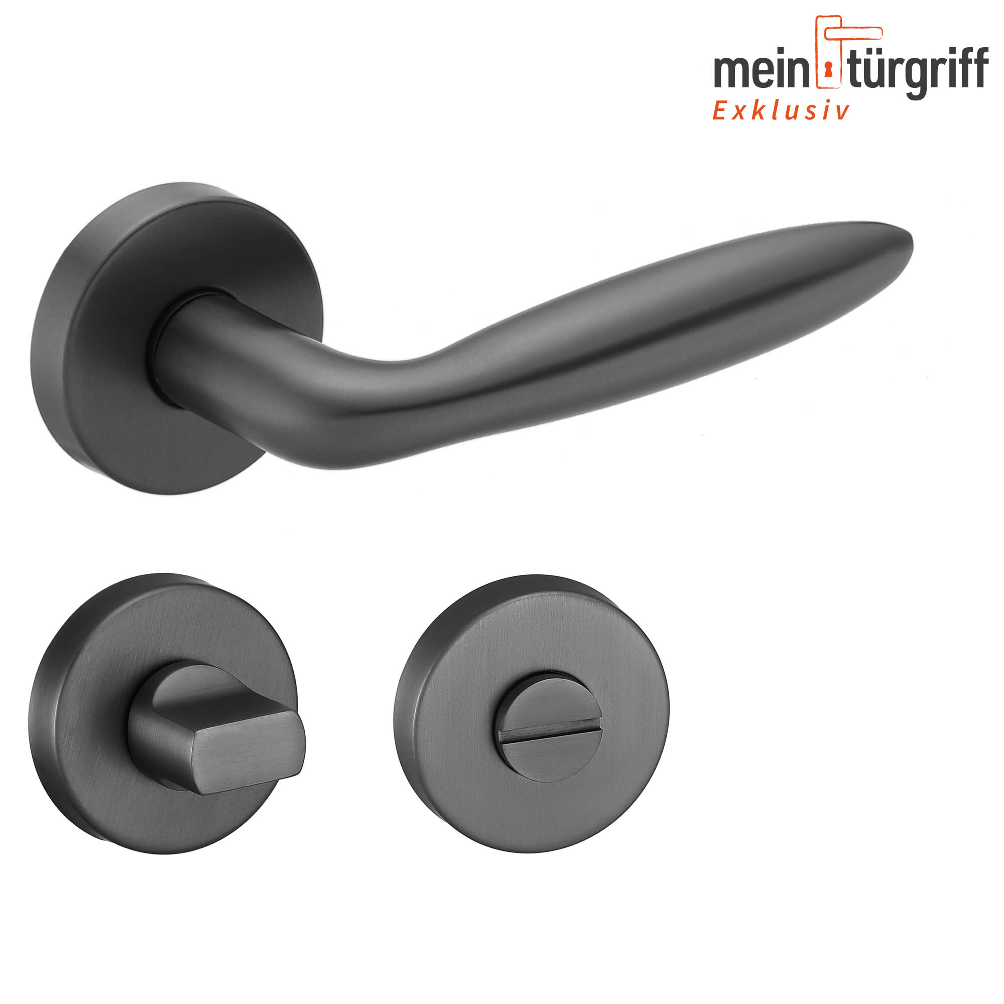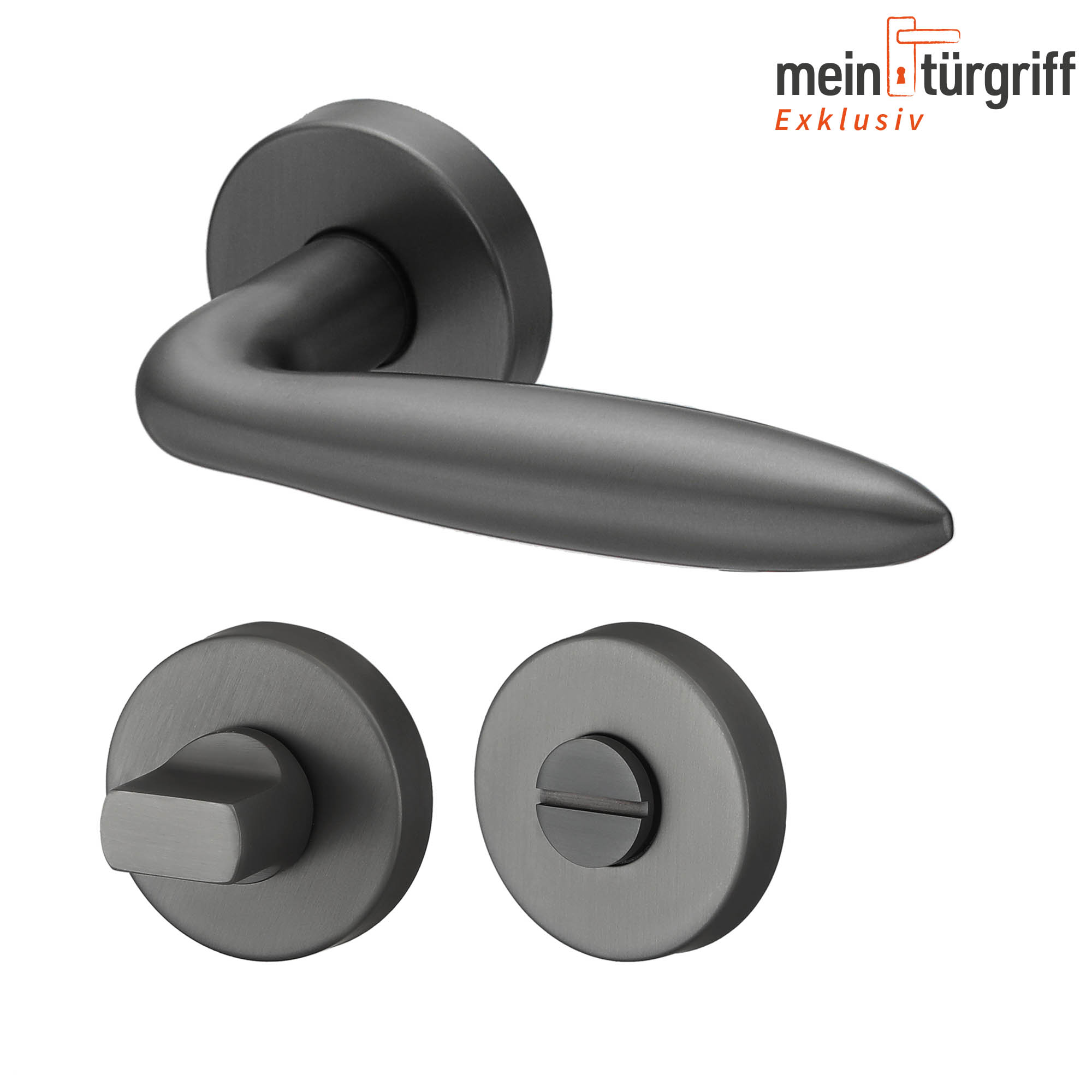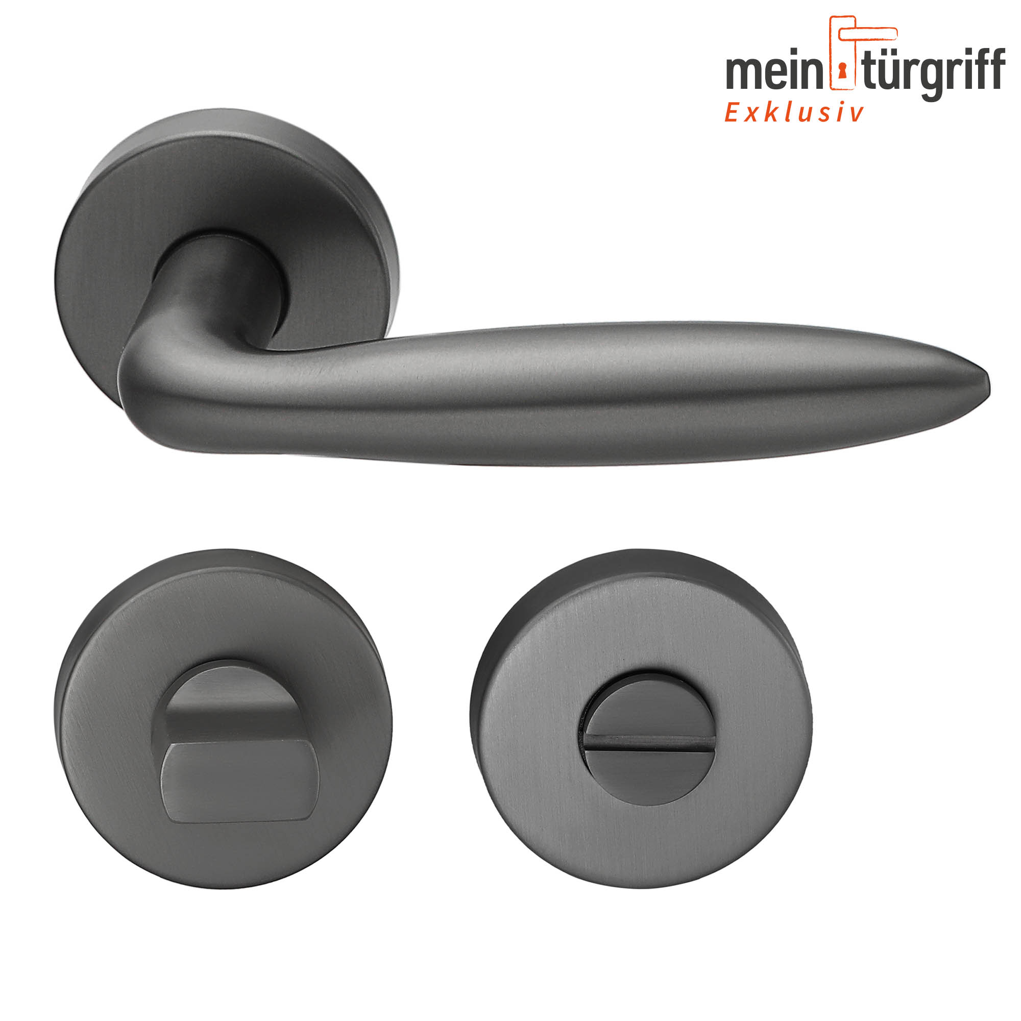 MeinTürgriff- Edelstahl-Türgriff-Garnitur-Samtgrau mit Schlüsselrosetten für Innentüren