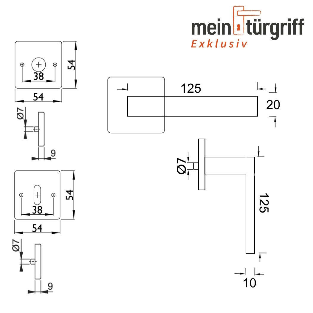 MeinTürgriff Drückergarnitur Edelstahl Matt Trento Flachrosette Eckig Türgriff Rosettengarnitur